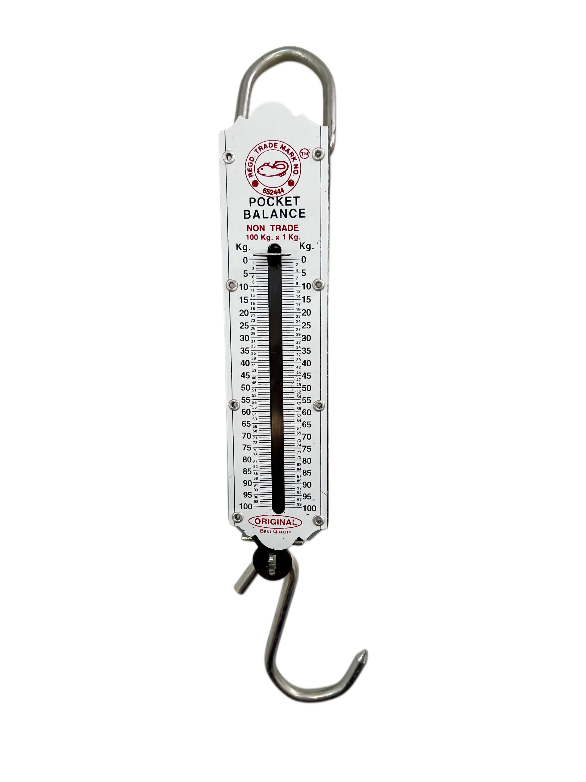 The DS 100KG Double Spring scale with a white dial measures weights up to 100 kilograms. Its double spring design helps give accurate readings, and the clear white dial makes it easy to see the weight. This scale is sturdy and simple to use for everyday weighing tasks.